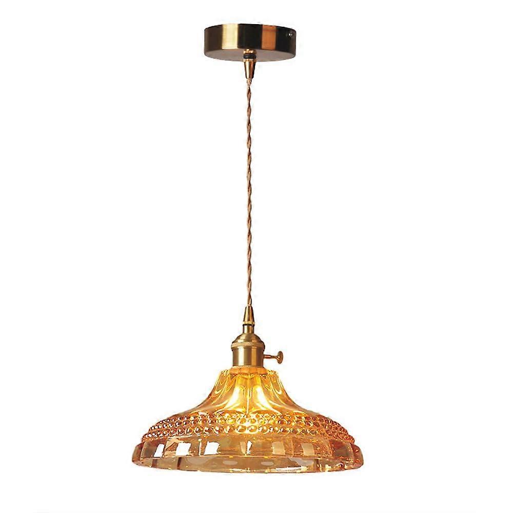 French Exquisite Pendant Lamp Amber Glass Hanging Lights Pot Cover Lampshade