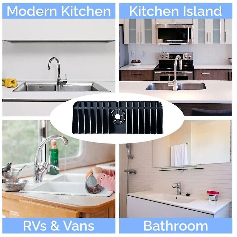 Kitchen Sink Splash Guard Silicone Faucet Mat Faucet Splash Catcher Pad Keep Kitchen Bathroom Sinks Dry Material: Silicone Color: Orange, Black, Gray Size: 37*13.7*1.7cm Weight: About 160g