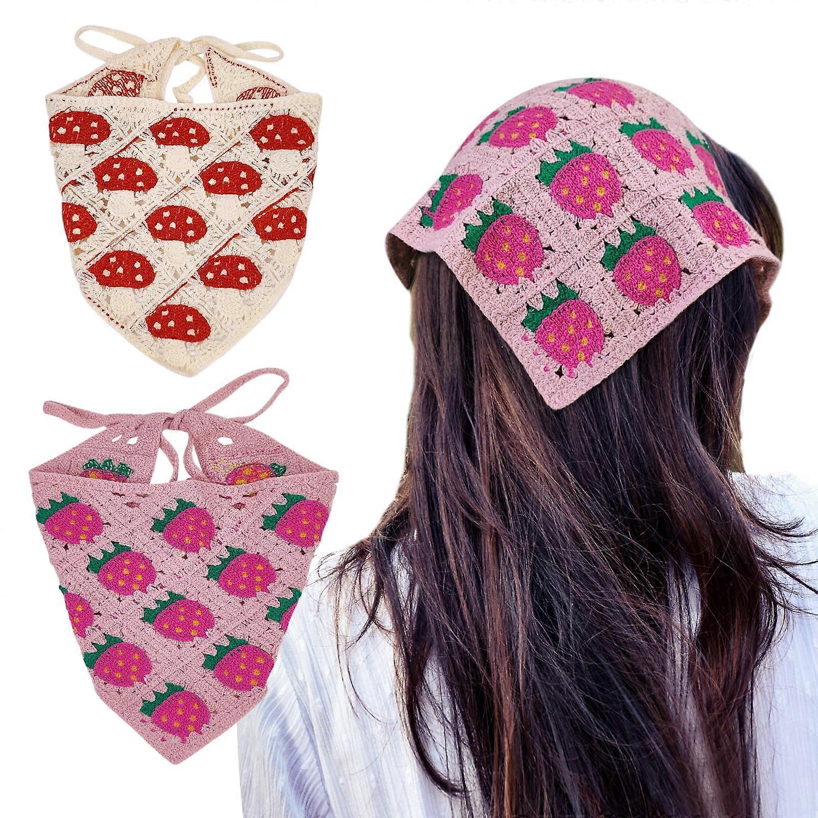 Crochet head bandana, triangular hood scarf, knitted head band, lace for bandana women, crochet bandana kit deep pink and apricot