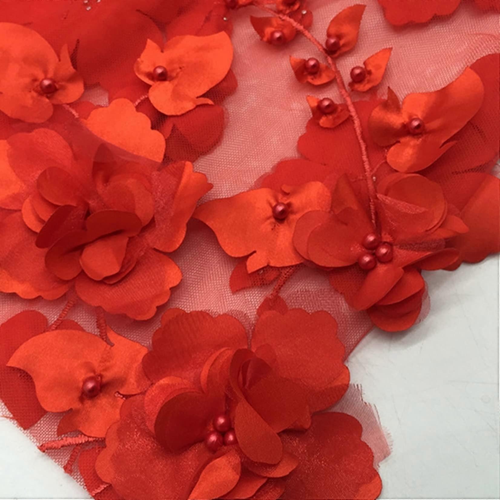 Tulle Fabric Roll 2 Meters 3D Appliques Flower Lace Fabric Sewing Dress Costume Table Cloth DIY Crafts Organza Tulle for Curtain Decor(Orange Red)
