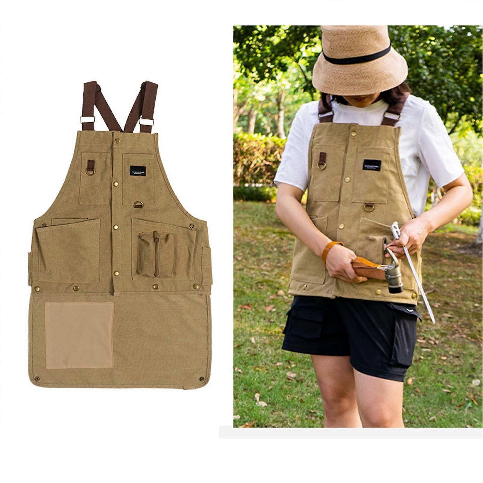Camping Apron Vest Multifunctional Adjustable Reinforced Edges Casual Vest for Outdoor Fishing Photography Khaki