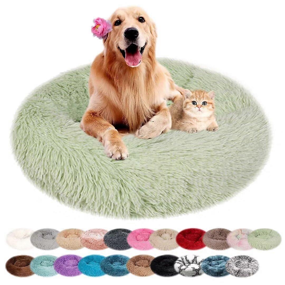 Dog Bed, Round Cat Bed, Plush Dog Beds, Machine Washable, Dog Mat, Dog Cushion for Small, Medium, Large Dogs with NonSlip Base, Light Green, 60 cm