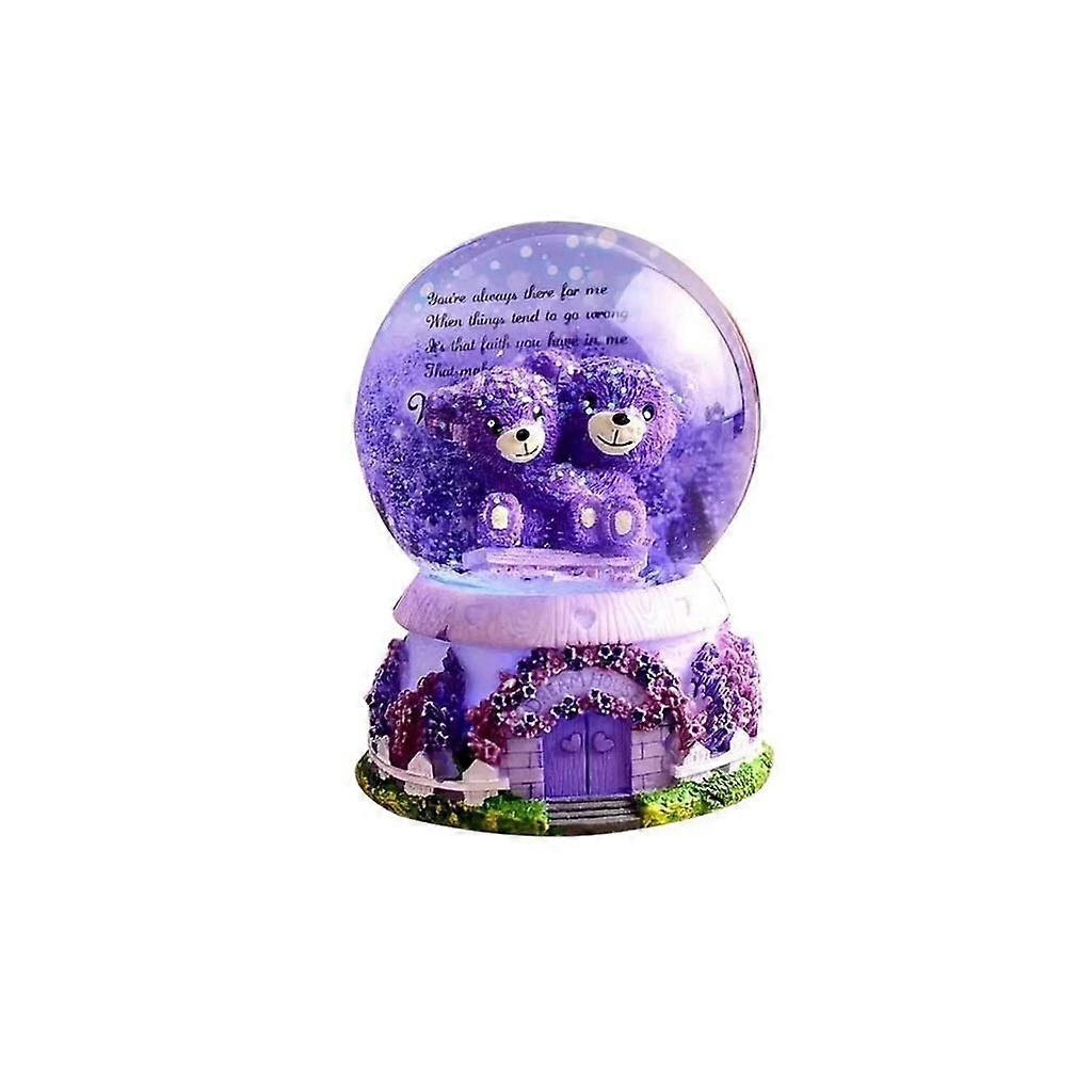 Snow Globe Music Box Snow Globe Lavender Purple Bear Crystal Ball Music Box Lights Snowflakes Birthday Girlfriend Gift