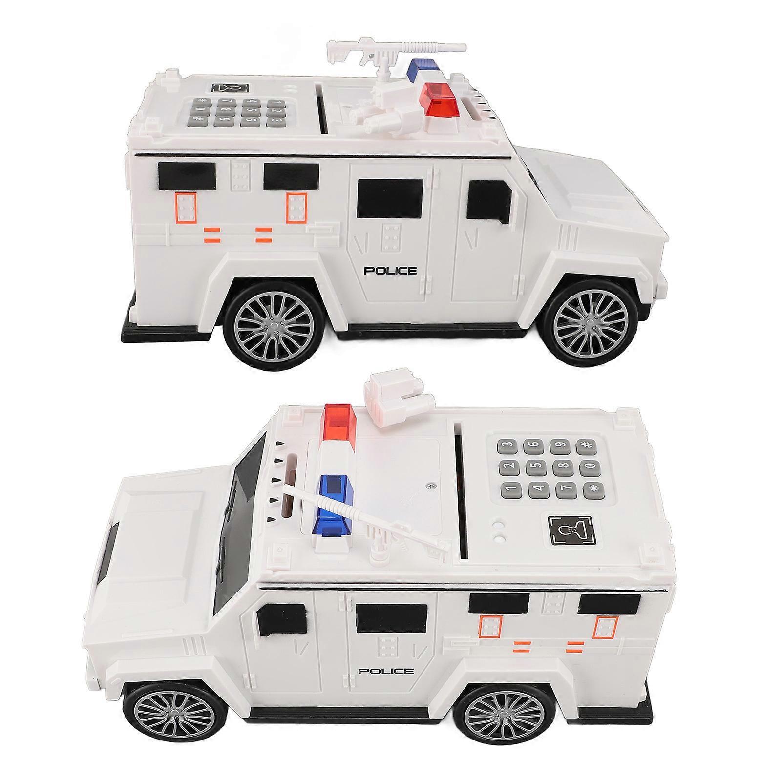 Armored Car Piggy Bank Fingerprint Password Automatic Roll Function Electronic Car Money Bank for Birthday White