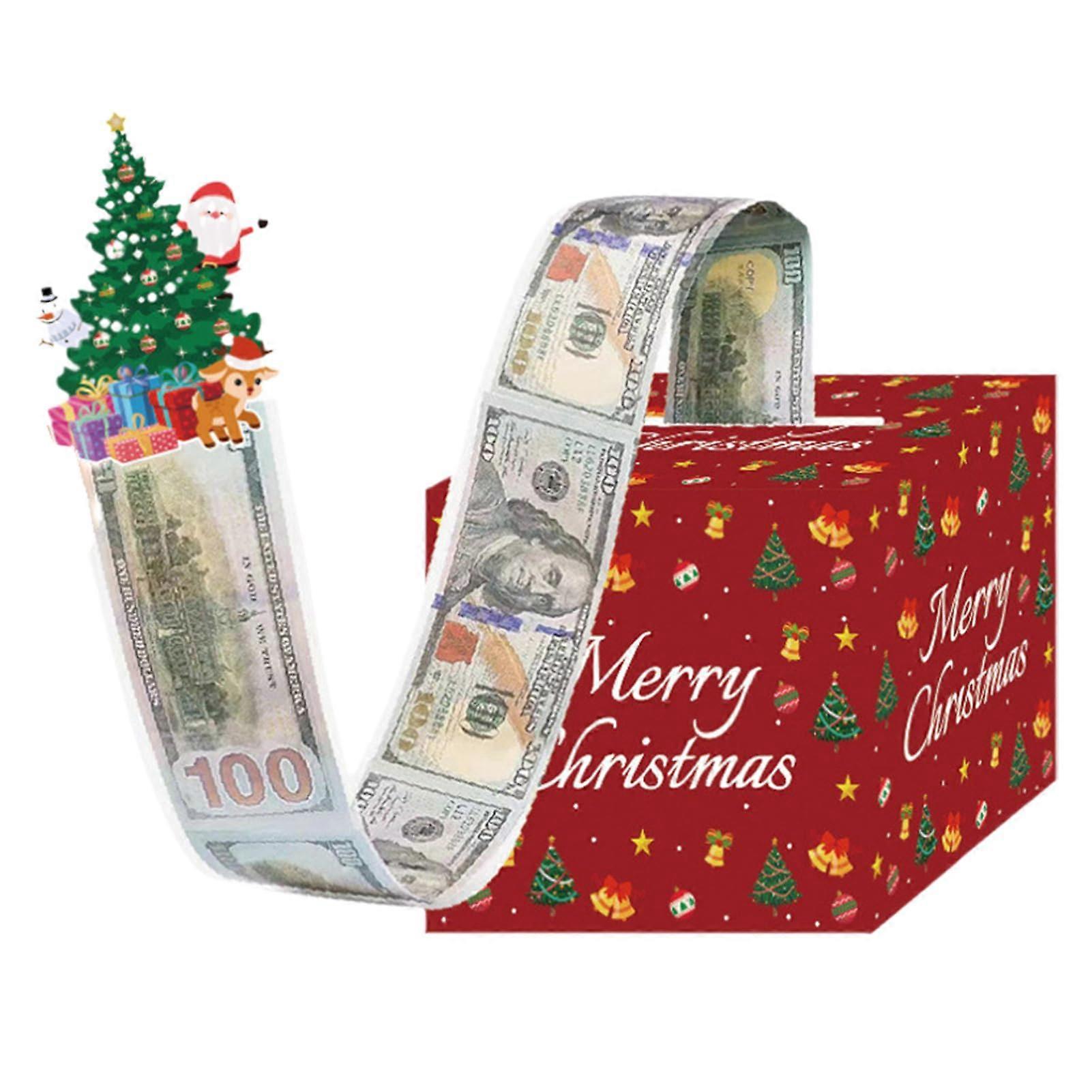 Christmas Money Pull-Box, Red Cash Holder for Birthdays, Holiday Parties, Family Gifts, Festive Design, 12x10x5 inches