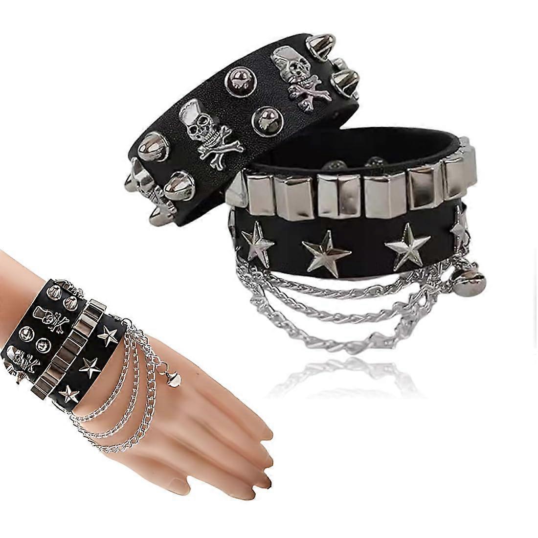 Pack of 2 Unisex Punk Studded Bracelets, Gothic Rivet Cuff, Rock Punk Bracelets