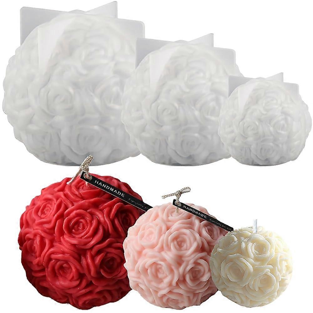 Pack of 3 Rose Ball Silicone Moulds for Scented Candle, Valentine's Day