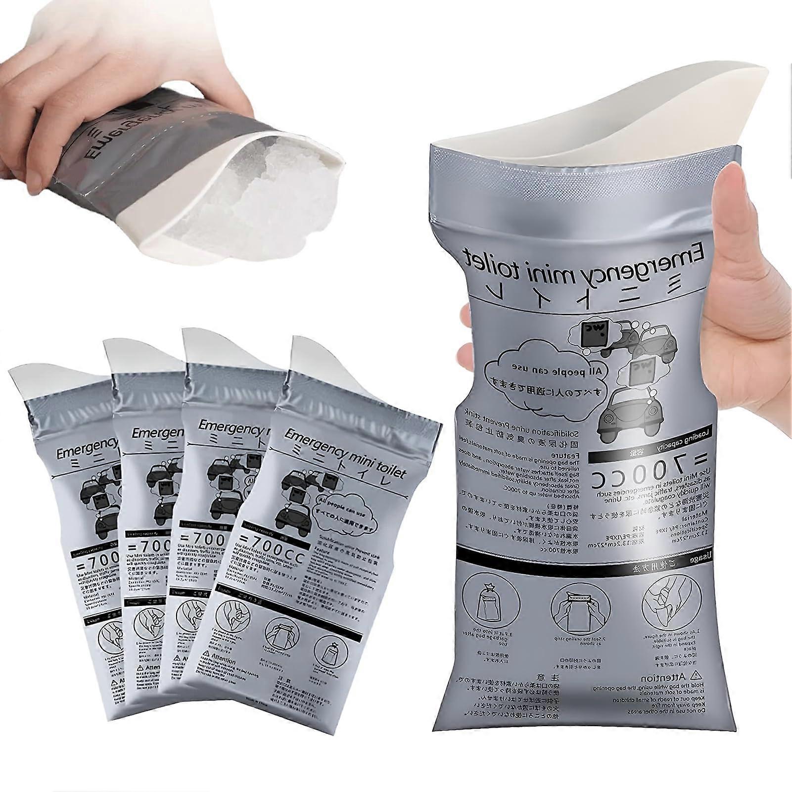 1. The set contains: 5 packs of urine bags for on the go that can hold 700 ml urea or vomit etc., which is very suitable for emergency use. 2. Highquality materials: urinella for women made of highquality, environmentally friendly PE material, nontoxic and odourless, not easy to break, good sealing, does not take up space, you can store it in your car and at home for a long time. 3. No smell: urine bottle for women. Inside there is a super absorbent polymer that can fully absorb the liquid within 60 seconds and form a light to firm gel to prevent leakage and eliminate odours, which is very practical and simple. 4. Easy to use: urine bottles for men. It is very easy to use and can be used while sitting, standing or even lying down. It can easily deal with problems with urination in different environments, for example in the car, outdoors and in hospital bed. Thanks to the curved, raised pockets, the leakage of urine can be easily prevented.