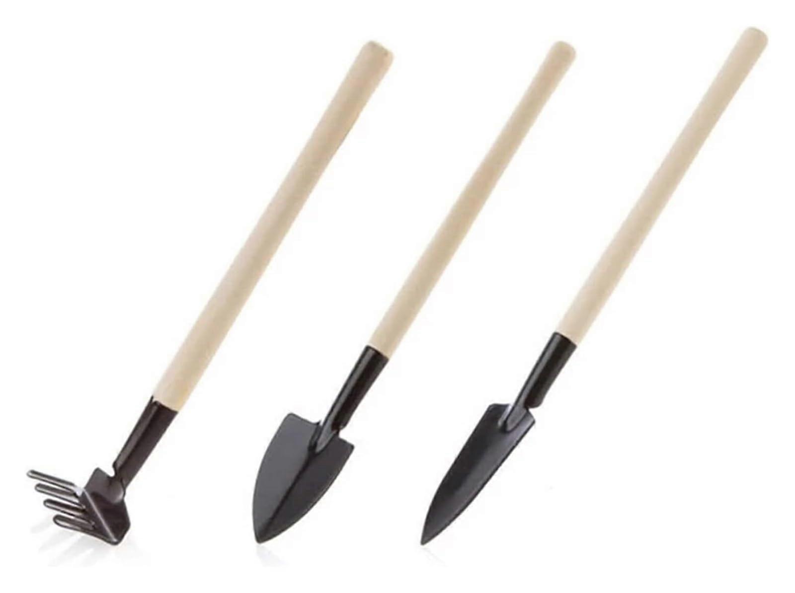 Garden shovel, trowel set, 3piece, wooden handle, stainless steel, shovel, rake, spade