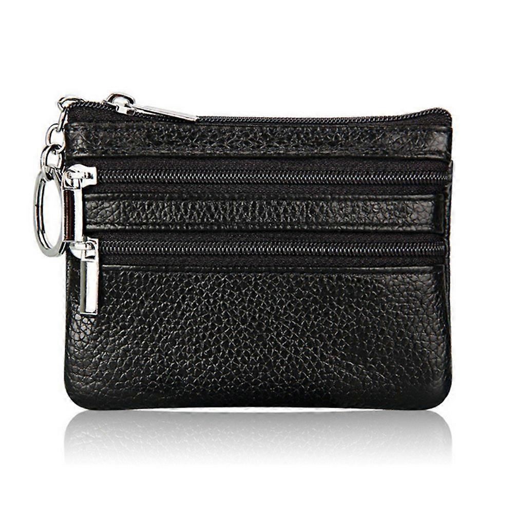 Small cute cow skin wallet for women, keychain for women and young girls, soft mini mini coin pouch (black)