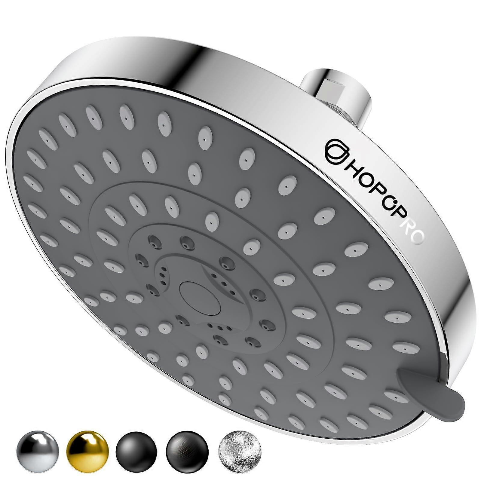 Hopopro High Pressure Shower Head 5-Mode 6 Inch Chrome Fixed Rain Shower Bathroom Fixture