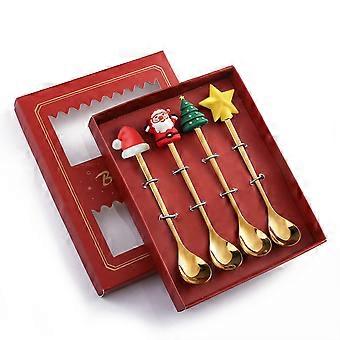 Espresso Spoon 4-Piece Stainless Steel Teaspoon Set, Deer Spoon Design, Stirring Spoons, Silver For Home Use