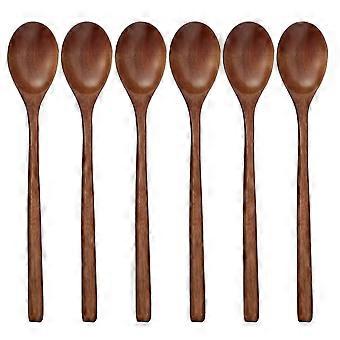 Wooden Soup Spoons Set 9 Inch Long Handle Japanese Style EcoFriendly Utensils with Unique Wood Grain