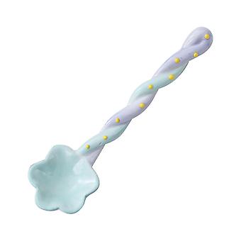 Ceramic Flower Shaped Long Handle Spoon for Soup Coffee Dessert Ice Cream Tea Green