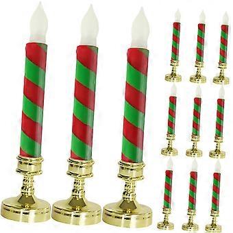 12-Piece LED Flameless Christmas Candles Set, Striped Decorative Lights, Battery-Free Table Decor for Holiday Celebrations