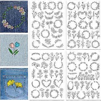 4 Sheets 11.6x8.2 Inch Stick and Stitch Embroidery Patterns Non-woven Fabrics Water Soluble Embroidery Stabilizers Mixed Shapes 297x210mmm