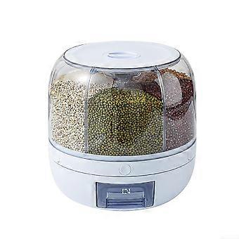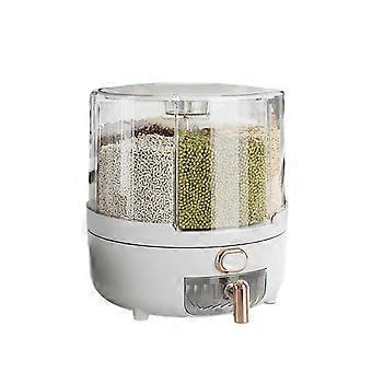 Rice Dispenser Moisture-Proof 6-Grid Rotating Food Grain Dispenser And Cereal Storage Box 10-15 Kg Capacity