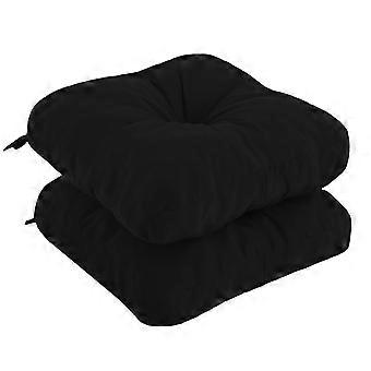 Outdoor Chair Cushions Waterproof with Ties for Patio Furniture, Tufted Seat Pads 19x19x5, Set of 2 Black