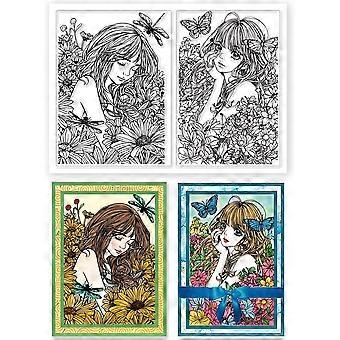 Retro Woman Postcard Background Clear Stamps for Cards Making Vintage Butterfly Silicone Clear Stamp Seals 5.83x8.27inch Transparent Stamps for DIY Sc