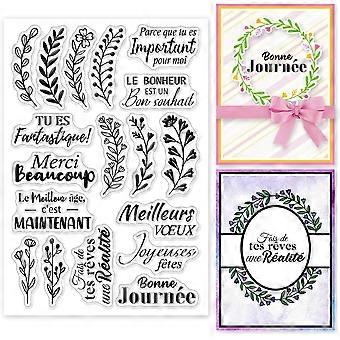French Blessings Words Clear Stamps Plants Wreath Silicone Clear Stamp Seals Plants Transparent Stamps for DIY Scrapbooking Cards Making Photo Album J