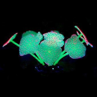 Artificial Silicone Coral Plant for Fish Tank, Luminous Aquarium Decoration, Realistic Underwater Landscape with Suction Cup (Green)