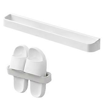 Wall Mounted Shoe Rack and Slipper Holder, Adhesive Plastic Organizer with Drainage, Large White