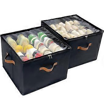 Shoe Storage Organizer for Closet, 2 Pack Foldable Stackable Bins with Clear Cover, Fits 1632 Pairs, Black