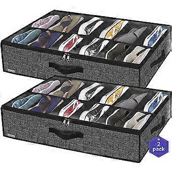 Under Bed Shoe Storage Organizer Set of 2 for 24 Pairs with Clear Window and Easy Slide Handles