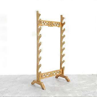 Bamboo Sword Stand with Flute Holder, Free-Standing Weapon Rack, Classic Wooden Sword Display (6-9 Levels, Wood Color)