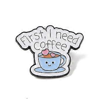 Handmade Cat and Coffee Brooch, Unisex Enamel Lapel Pin, Gold-Tone Metal, Cat and Coffee Design, 1.2in x 1.5in