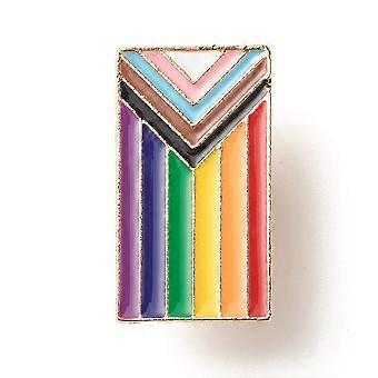 Pride Flag Enamel Pin Rectangle Iron Enamel Brooch for Backpack Clothes Light golden Colorful 15.5x27.5x10mm
