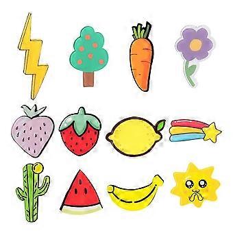 12pcs 12 style Acrylic Badges Brooch Pins Cute Lapel Pin Strawberry Carrot Watermelon Banana Lemon Lightning Tree Sun Flower Cactus Meteor Mixed color