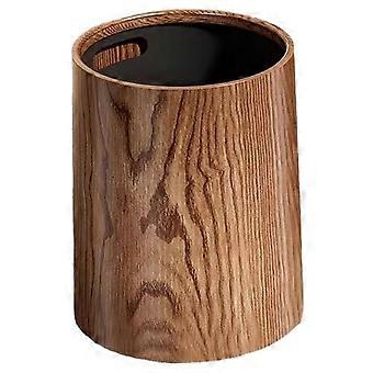 Wood Grain Trash Can 8L Vintage Plastic Waste Bin for Bedroom, Bathroom, Living Room, Hotel - Large Capacity Decorative Container