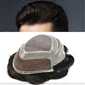 Men's Toupee 100% Human Hair Thin Skin Hairpiece 8x10 Dark Brown Invisible Hairline Secure Fit