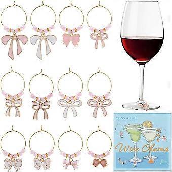 12 Styles Drink Charms Drink Tag Charms Bulk Pink Cute Kawaii Alloy Enamel Bowknot Labels Cups Stem Identifier Gold Markers Wine Glass Labels for Part