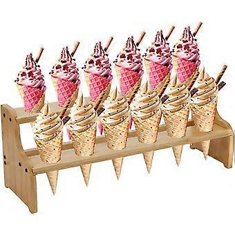 Bamboo Ice Cream Display Stand 2-Tier Ice Cream Cone Holder with 12 Holes Wheat Color Wood Waffle Cone Display Stand Ice-cream Display Riser Stands fo