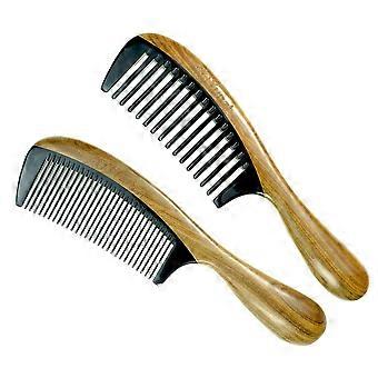 2 PCS Sandalwood Ox Horn Wooden Comb Set for Women - Wide Tooth and Fine Tooth Hair Combs for All Hair Types
