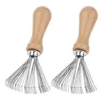 Hairbrush Cleaner Tool 2 Pack Mini Comb Cleaner with Wooden Handle and Metal Rake for Removing Hair Dust Lint in Home or Salon