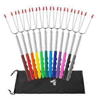 6 Pcs 30 Inch Extendable Marshmallow Roasting Sticks Stainless Steel Telescopic BBQ Forks for Campfire Grill