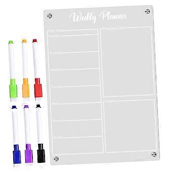 1Set Refrigerator Magnetic Acrylic Reusable Dry Erase Board Transparent Planning Board with Whiteboard Markers for Task Lists and Reminders