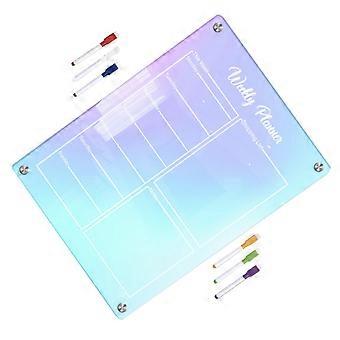 Magnetic weekly planner made of acrylic, dryerase, transparent memo message board for refrigerator with markers, erasable fridge organizer.