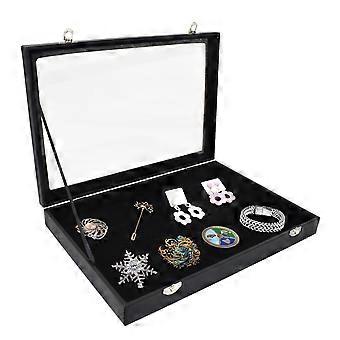 Solid Wood Jewelry Box With Tempered Glass Lid, Metal Clasp, 35.4 x 24.9 x 4.4 cm
