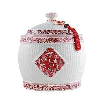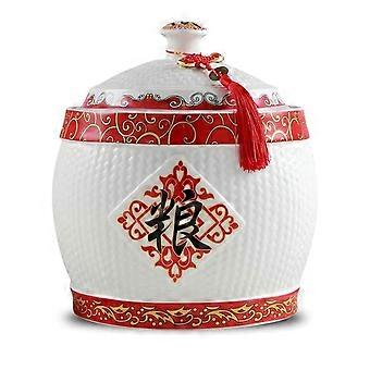 Ceramic Rice Storage Jar with Lid, Large Grain Dispenser for Rice, Noodles, Snacks