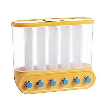 Cereal Dispenser with One-Click Rice Output, Multigrain Dry Rice Container, Sealed Grain Storage Tank, Grey and Yellow