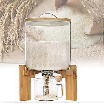 Airtight Glass Rice and Cereal Dispenser 5L with Wooden Lid and Measuring Cup for Dry Food Storage