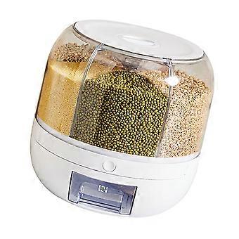 Rotating Rice Dispenser 6Bin Multipurpose Grains Storage Container Sealed Dry Cereal Bucket White Large
