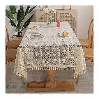 Tablecloths 150 x 110 Cm Rectangular Polyester Lace Floral Pattern White For Garden Table Dining Weddings Easy Care