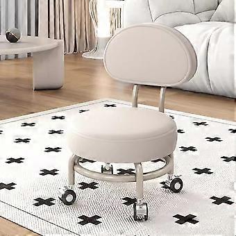 Leather Low Stools For Children With Backrest Quiet Round Pedicure Stool D34*H52cm Beige