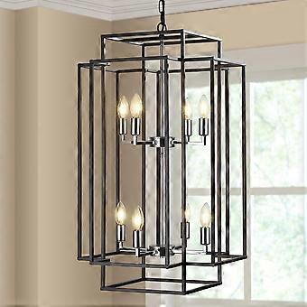 8 Light Lantern Pendant Chandelier, Tiered Farmhouse Light Fixture for Entryway, Foyer, Kitchen, Black and Silver