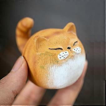 Chinese Tea Pet Purple Clay Cat Figurine, Handmade Zisha Ceramic, Lucky Prosperity Tea Decoration